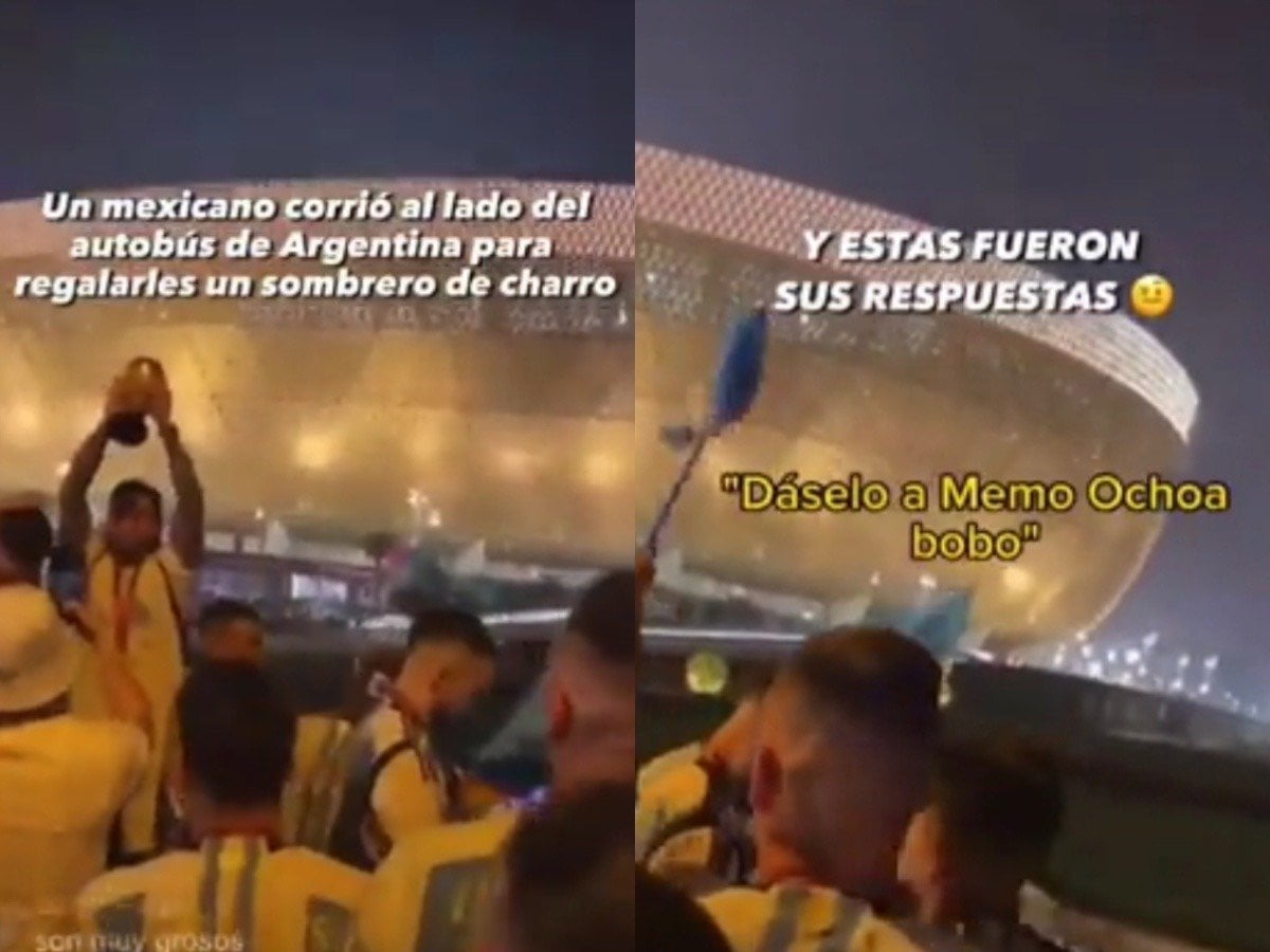 Un aficionado mexicano se acercó al autobús de la selección argentina quienes se encontraban celebrando haber ganado la copa del mundo, para obsequiarle a los jugadores un sombrero de charro, sin embargo, la reacción de los jugadores una vez más decepcionó.
