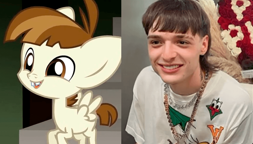 Un video que circula en la plataforma TikTok ha captado la atención de los internautas al señalar una asombrosa similitud entre Peso Pluma y un personaje de la popular serie infantil animada «My Little Pony». En la serie, este personaje recibe el nombre de «Featherweight» (Peso Pluma) y es un potro pegaso de edad escolar que aparece en el episodio titulado «El cuarto poder de Ponyville».