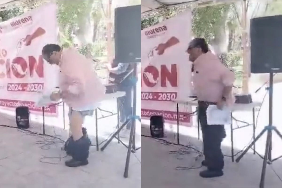La tarde del domingo, durante un mitin en Saltillo, Coahuila, el diputado de Morena, Javier Borrego Adame, protagonizó un momento muy vergonzoso cuando se le cayeron los pantalones mientras daba un discurso. Un video del incidente se ha vuelto viral en redes sociales, desatando diversas reacciones y comparaciones.