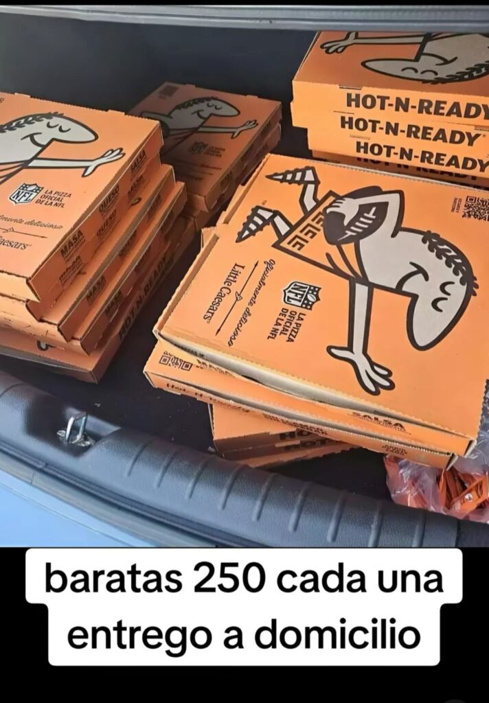 En una reciente publicación en sus redes sociales, @Jesúsamiestilo compartió una imagen que mostraba la cajuela de un automóvil repleta de pizzas de Little Caesars, aparentemente listas para ser revendidas con servicio de entrega a domicilio.