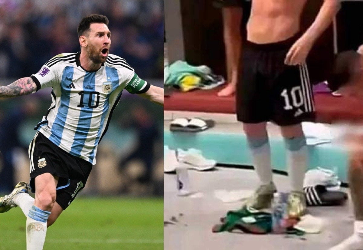 El 10 argentino fue captado celebrando la victoria frente a México en el vestidor, sin embargo, un usuario notó el instante en el que Messi pisa y patea la playera de México, algo que disgustó al respetable.