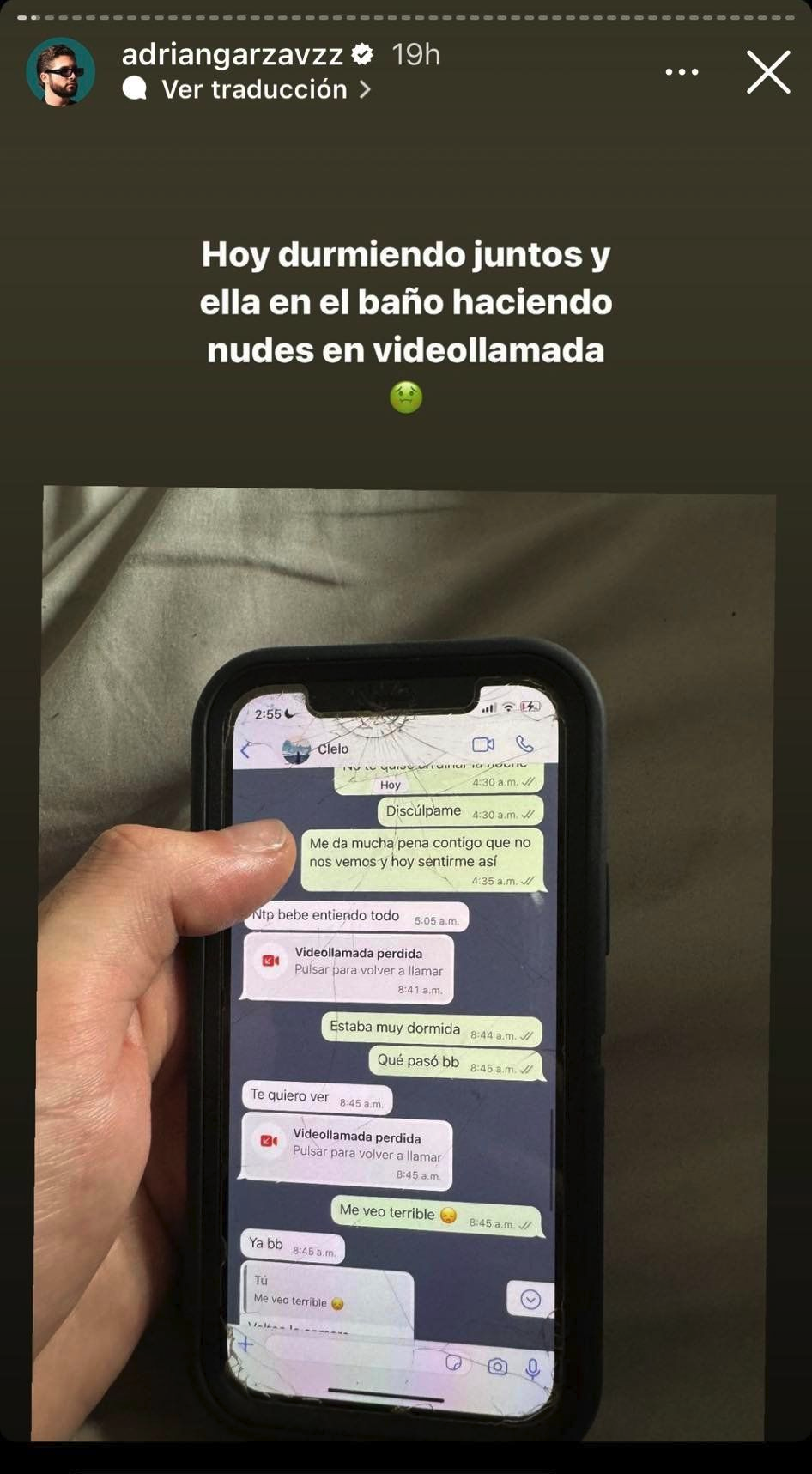 En una serie de capturas de pantalla, videos y mensajes compartidos en sus historias, Adrian Garza exhibió las pruebas innegables de la infidelidad de Melissa, quien al parecer desactivó su cuenta de Instagram después de la publicación. El empresario señaló a su ex pareja por haberle sido infiel durante dos meses y engañarlo incluso sobre el embarazo que, según él, le hizo creer que era suyo.
