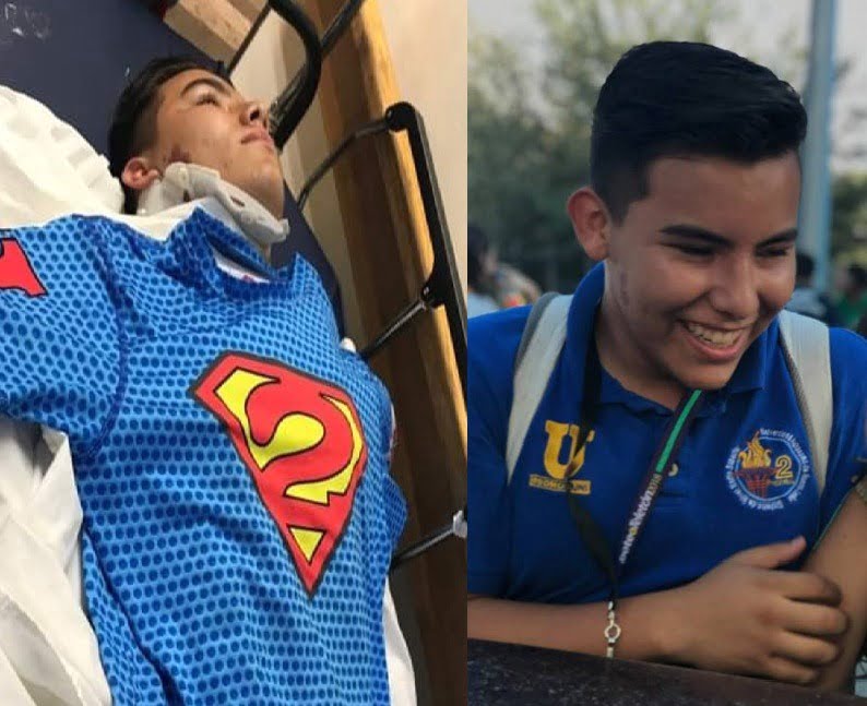 Isaac Gallegos, fue tratado como un héroe por haberle salvado la vida a su compañera. El joven presenta fracturas en un brazo y espalda, una de sus cejas fue lastimada pero afortunadamente se encuentra fuera de peligro.