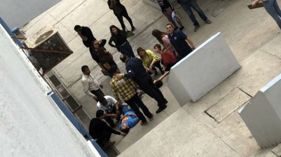 Según testigos, la joven se lanzó por voluntad propia desde uno de los edificios, sin embargo, cayó sobre otro estudiante que también resultó lesionado, lo que le salgó la vida a la joven.