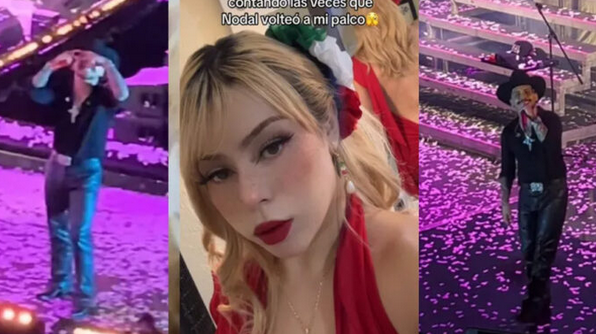 La creadora de contenido Lay Marcamsa publicó en TikTok un video titulado “Contando las veces que Nodal volteó a mi palco”, en el que mostró cómo el intérprete de regional mexicano supuestamente la observaba, le hacía señas, lanzaba besos y hasta le arrojó uno de los sombreros que utilizó en el escenario.