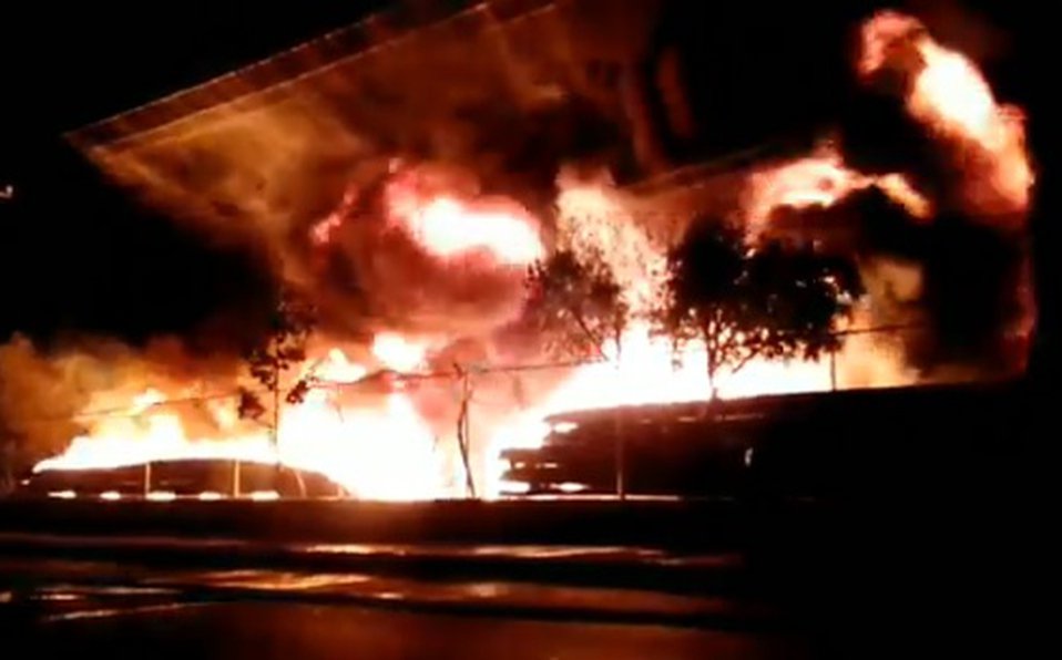 Autoridades informaron que el personal de bomberos ya se encuentra controlando el incendio de material plástico sobre el camellón, aparentemente se trata de unas tuberías de PVC.