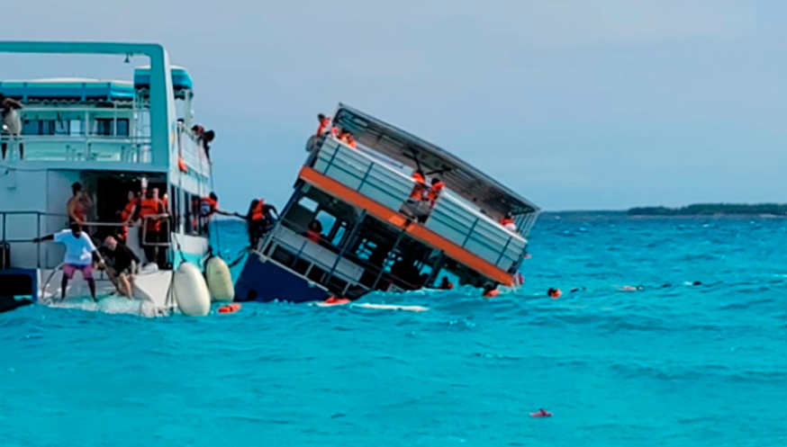 Ante la situación, algunos pasajeros optaron por lanzarse al Mar Caribe, buscando seguridad en las aguas, mientras que otros permanecieron a bordo, aferrándose a la embarcación en un intento por mantener la calma.