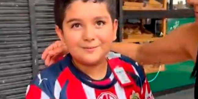 El hecho ocurrió cuando el equipo de redes sociales del Club Deportivo Guadalajara se cruzó con Hernán mientras caminaba junto a su madre. Con una camiseta del Rebaño puesta y una sonrisa tímida, el niño fue abordado por uno de los integrantes del club, quien le entregó una playera oficial del Apertura 2025 y un termo rojiblanco como obsequio.