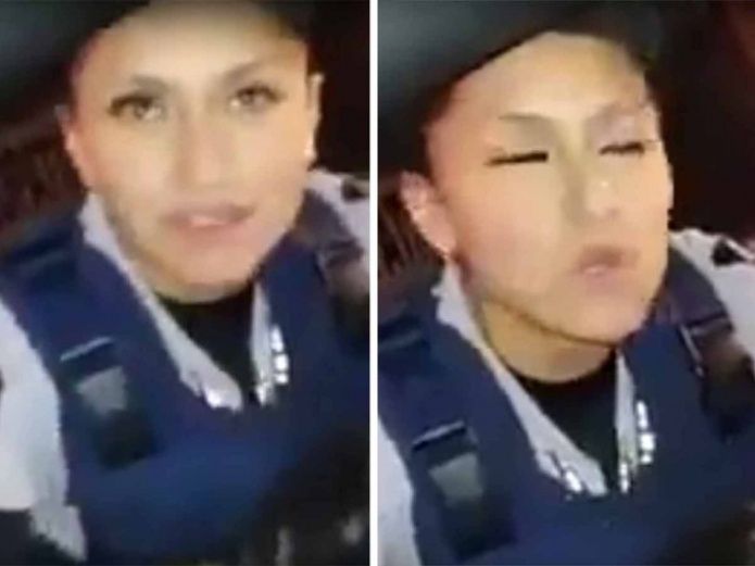 «Ya neta, no me lleve. Está usted muy guapa, ¿me va a llevar al alcoholímetro?”, le pregunta a la oficial el conductor. A lo que la policía contesta “no lo vayas a subir al Facebook, te estoy hablando”.