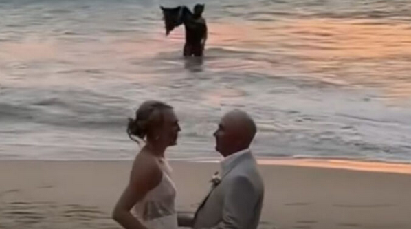 En la grabación puede escucharse incluso un mariachi interpretando Si Nos Dejan, completando la postal más mexicana y al mismo tiempo más surrealista del día. En medio de ese ambiente romántico, el superhéroe emergiendo del océano terminó convirtiéndose en la cereza del pastel de una boda que ya es inolvidable.