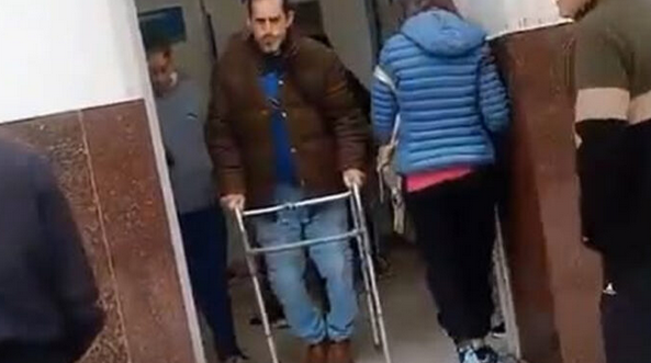De acuerdo con las imágenes, el sujeto ingresó al Banco de la Nación Argentina utilizando un andador y aparentando dificultades para caminar. Esto le permitió acceder más rápido al servicio, aprovechando los espacios destinados a personas con movilidad reducida.