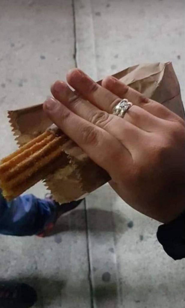 En un puesto de churros un joven le pidió la mano a su chica, nadamás y nada menos que comiéndose un churrito.