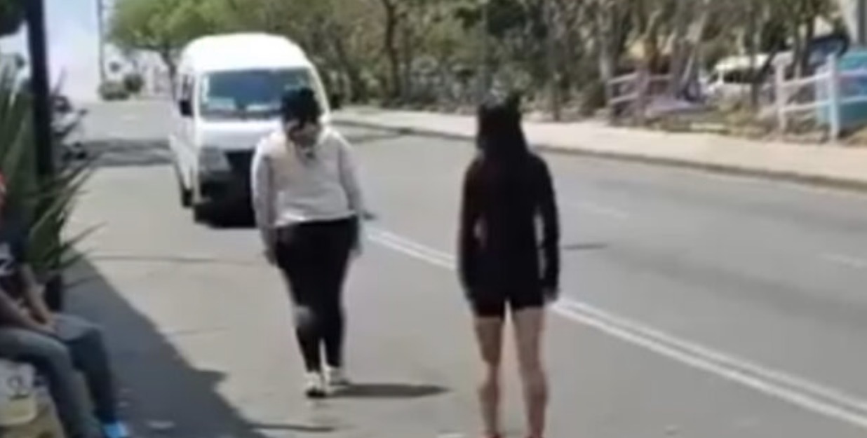 En las imágenes se observa a un grupo de mujeres esperando transporte público. Cuando una combi abre sus puertas, aprovechan el momento para lanzar agua al interior del vehículo, mojando a los pasajeros sin previo aviso.