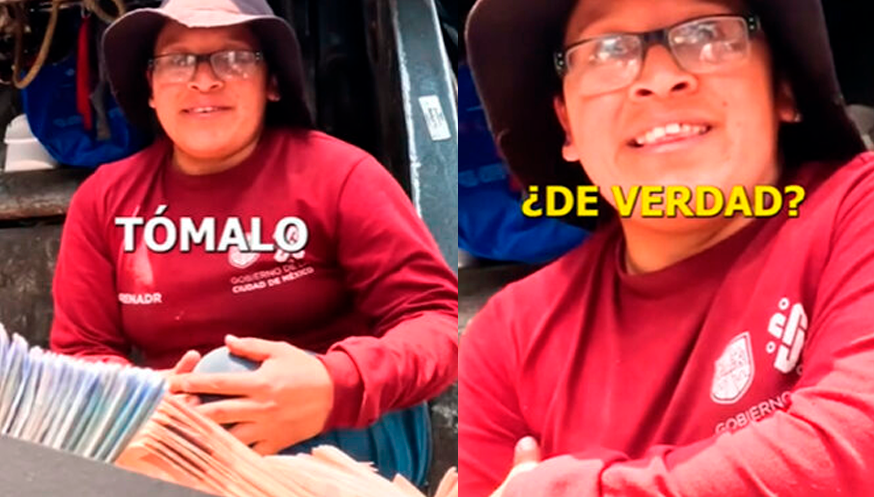 «Me tiemblan las manos al decirte esto, pero te voy a dar medio millón de pesos si no vuelves a tocar la basura», expresa el famoso mientras muestra la cantidad de billetes que le entregará.