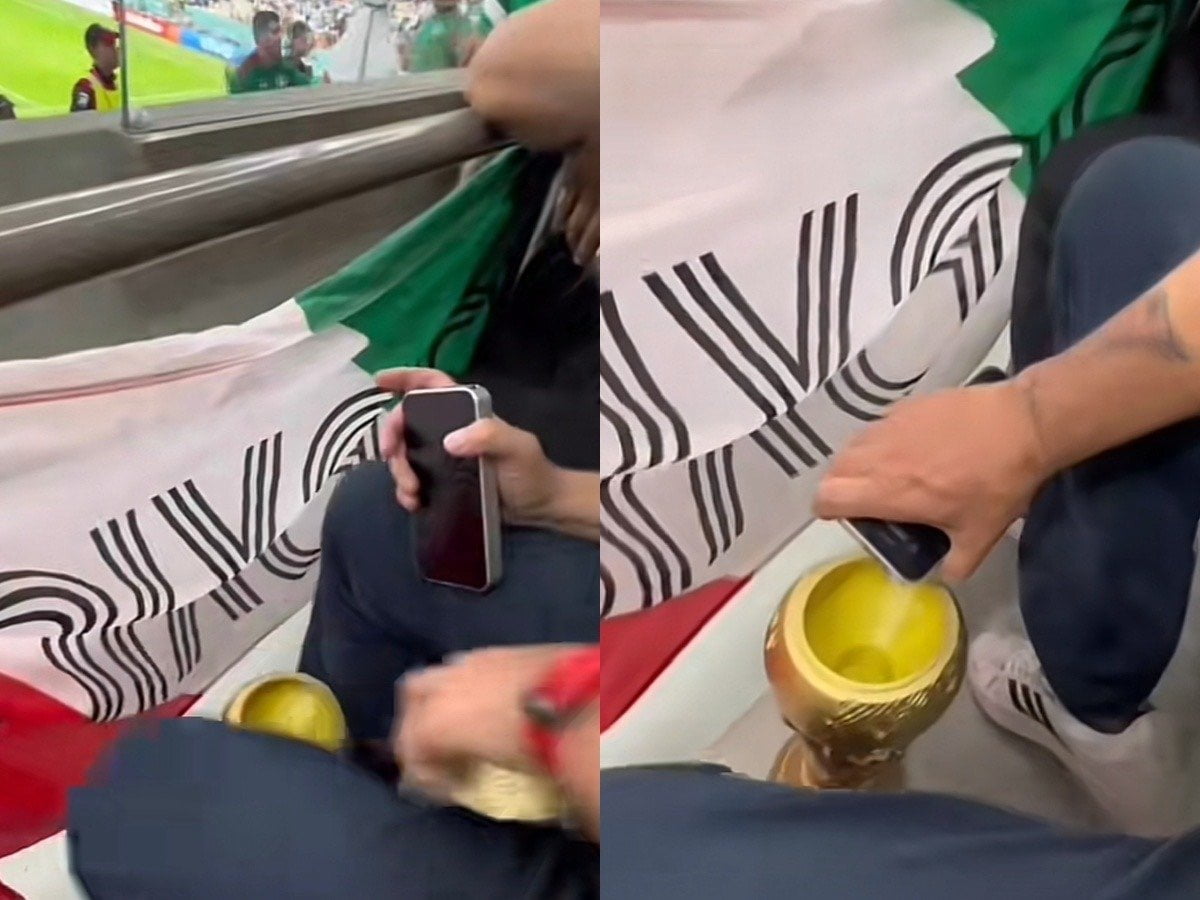 Durante la final en la que se enfrentaron la selección Argentina contra la selección francesa, un aficionado mexicano se grabó preparándose un trago con una bebida que ingresó de contrabando al estadio escondida en un iPhone falso.