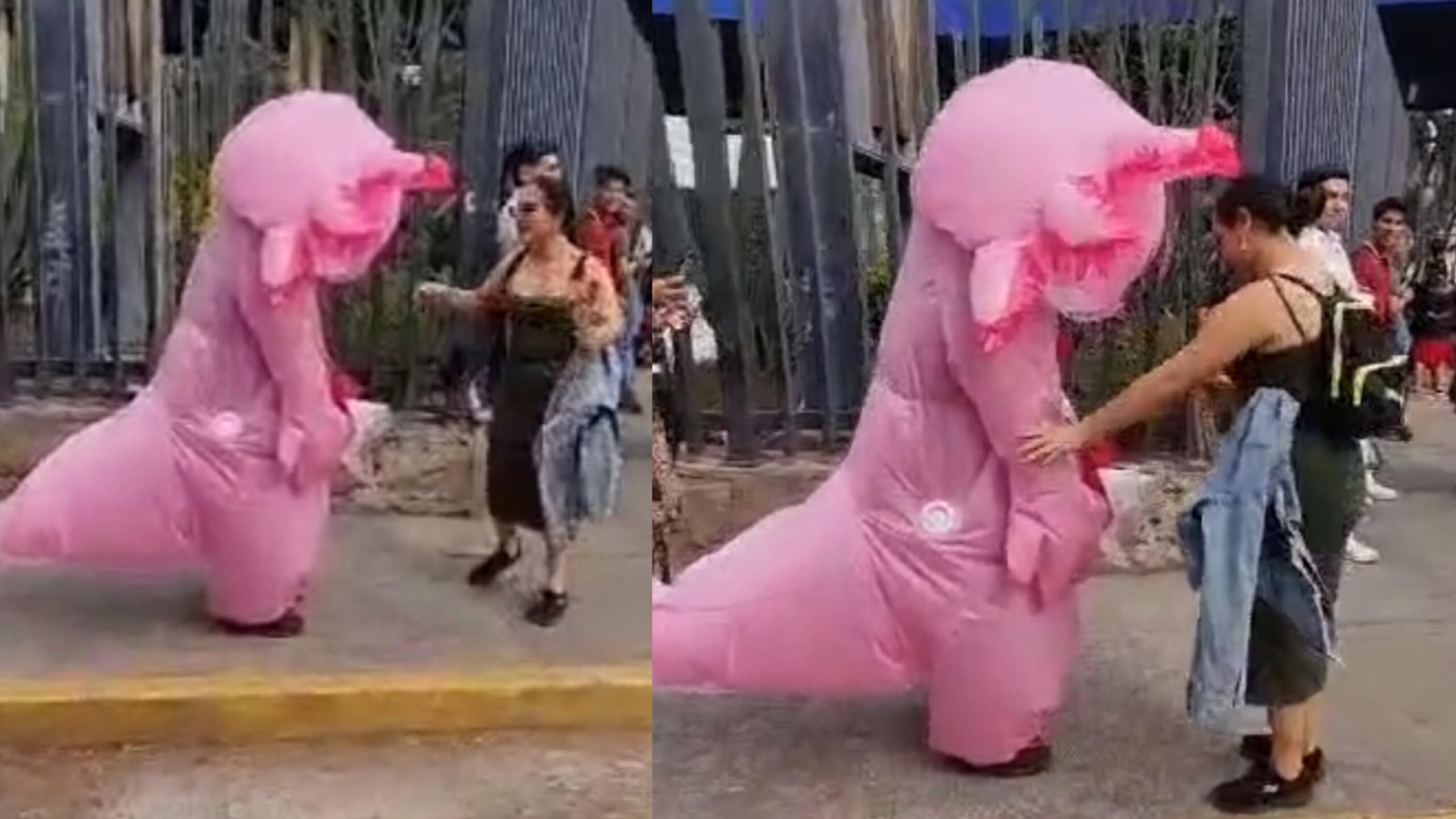 El video de este insólito suceso comenzó a circular en redes sociales, específicamente en la cuenta de TikTok @soyelpeps27, donde se muestra al joven vestido con un llamativo disfraz inflable de ajolote color rosa. Su intención era sorprender a la chica que le gustaba y confesarle sus sentimientos en pleno Día de San Valentín.