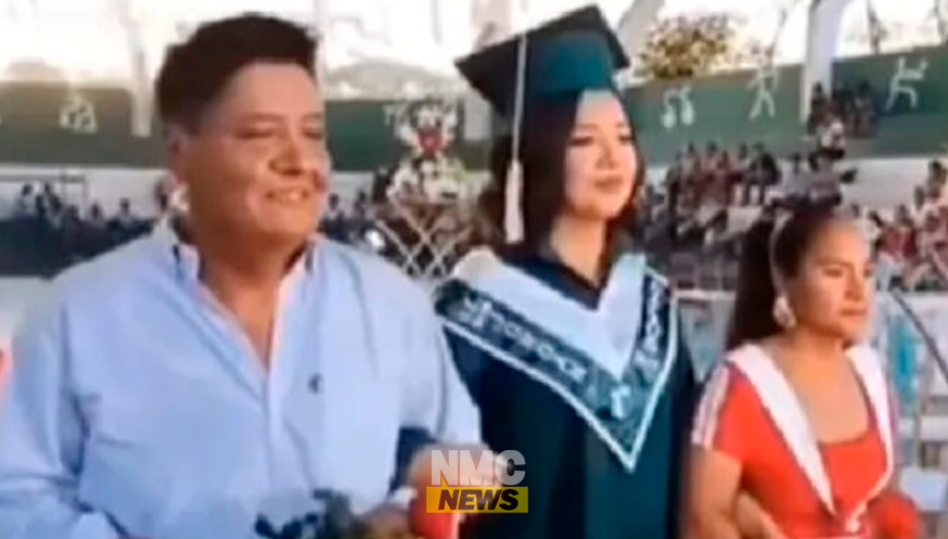En el video, se observa a la joven caminando del brazo de sus padres hasta llegar al área de fotografías. Al notar el cartel, la estudiante intentó ocultarlo visiblemente molesta, y antes de que concluyera la sesión de fotos, abandonó a sus padres en el lugar.