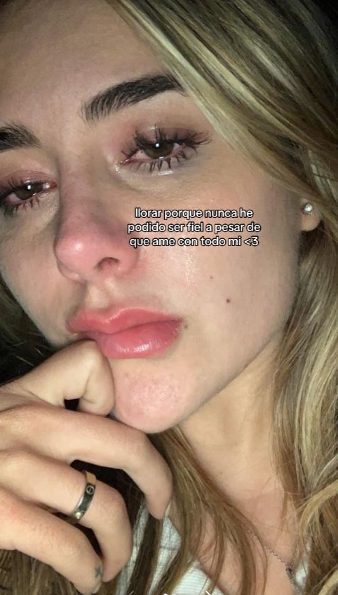 En el video, la mujer comparte su angustia con sus seguidores, confesando que a pesar de amar profundamente, no ha logrado mantener la fidelidad en sus relaciones amorosas. La grabación muestra una imagen de la joven llorando, acompañada de un texto que dice: «Llorar porque nunca he podido ser fiel a pesar de que ame con todo mi corazón». Esta declaración sincera provocó una avalancha de comentarios y reacciones en las redes sociales.