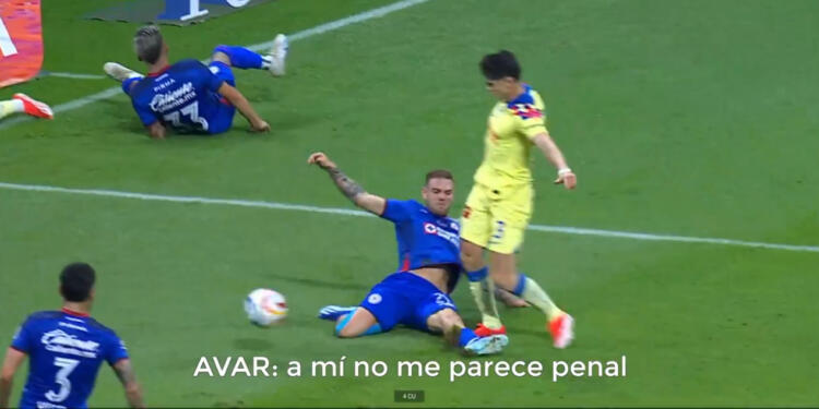 «La puntea el de América y cuando va a dar el paso, el pie de apoyo se lo lleva con el pecho. Ya no tiene dónde poner, se lo lleva con el pecho. Ahí se ve la zancadilla, el de Cruz Azul no toca el balón y con el cuerpo se lo lleva en la (pierna) de apoyo. Me quedo con mi decisión, falta imprudente».