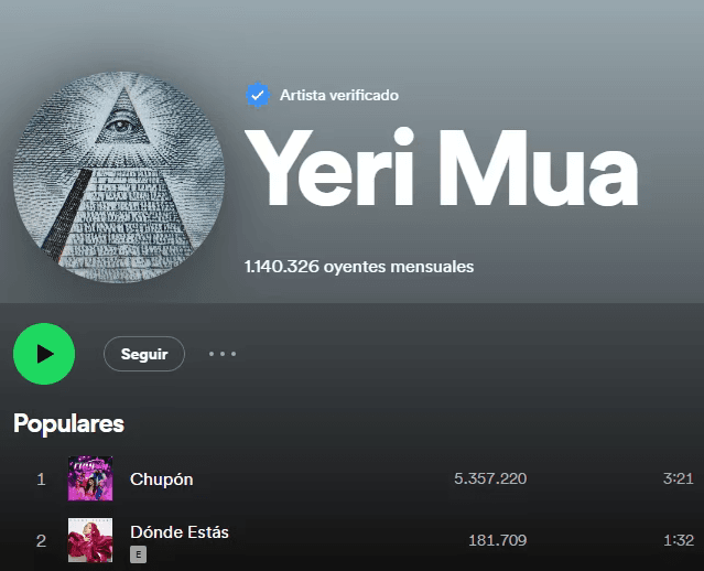 Desde el principio, al acceder al perfil de Spotify de Yeri Mua, la imagen de perfil mostraba el icónico símbolo Illuminati del ojo sobre la pirámide, lo que ya resultaba extraño. Pero lo más inquietante estaba por venir.