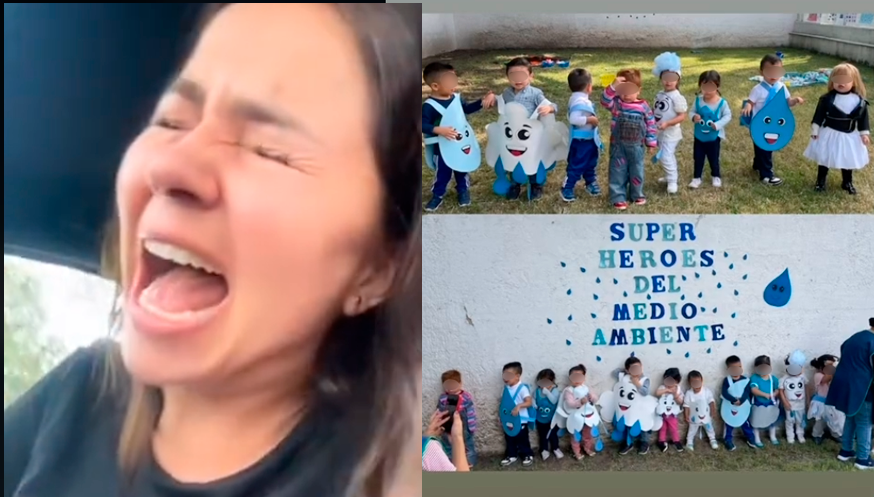 Incluso, antes de entrar a la escuela, notaron a un niño disfrazado de una gota de agua, lo que les pareció un tanto absurdo en ese contexto.