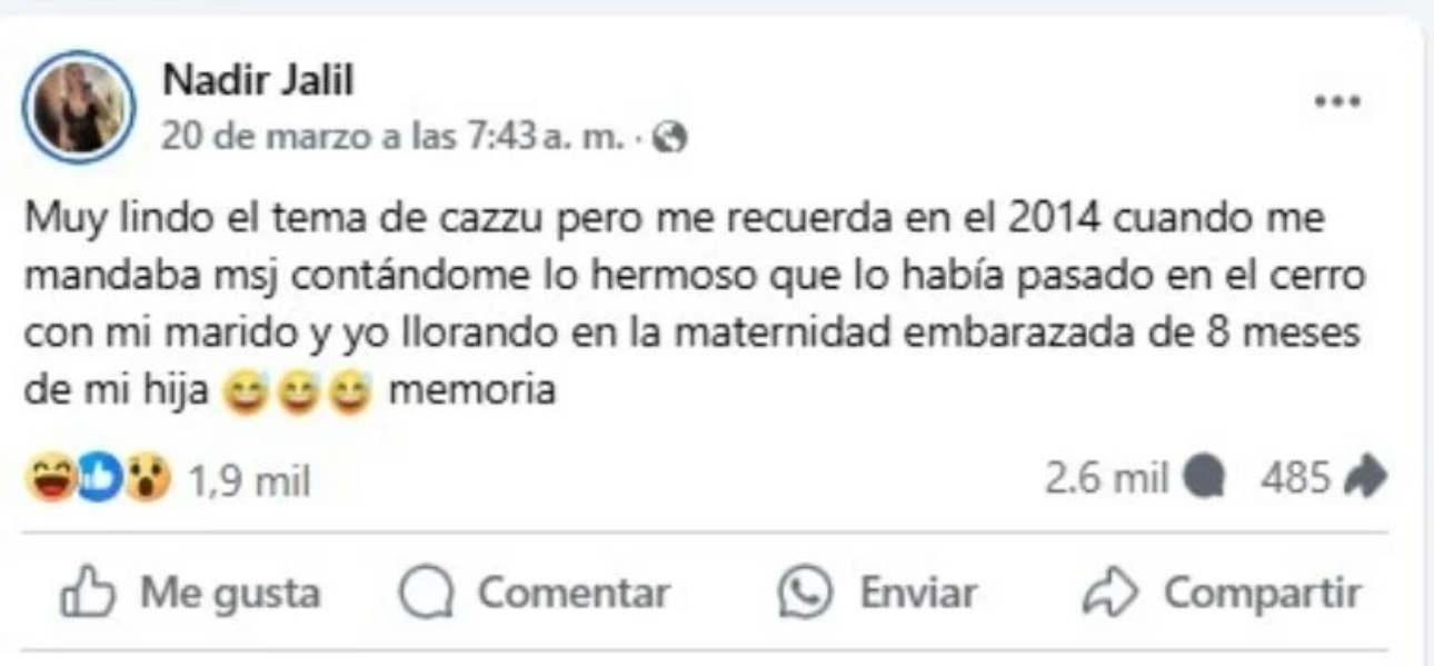 Sin embargo, el éxito de Cazzu se ha visto empañado por una nueva polémica. Una mujer llamada Nadir Jalil apareció en redes sociales acusando a la cantante de haber mantenido una relación con su esposo en 2014, cuando ella estaba embarazada de ocho meses. A través de su cuenta de Facebook, Nadir escribió: “Muy lindo el tema de Cazzu, pero me recuerda al 2014, cuando me mandaba mensajes contándome lo hermoso que lo había pasado en el cerro con mi marido, y yo llorando en la maternidad, embarazada de mi hija”.