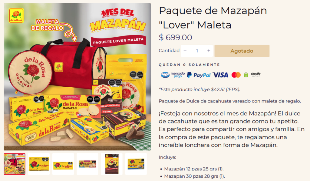Entre estos paquetes, hubo uno que capturó la atención del público: aquel que ofrecía una maleta de mazapán como regalo especial. Este paquete, disponible por $699 pesos, se agotó rápidamente, destacando la demanda de estos productos novedosos y temáticos.