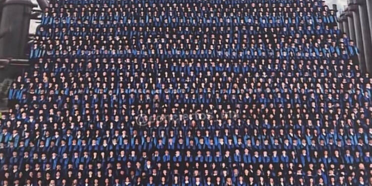 La imagen de esta masiva graduación ha generado tanto curiosidad como humor en las redes sociales, convirtiéndose en un fenómeno viral.