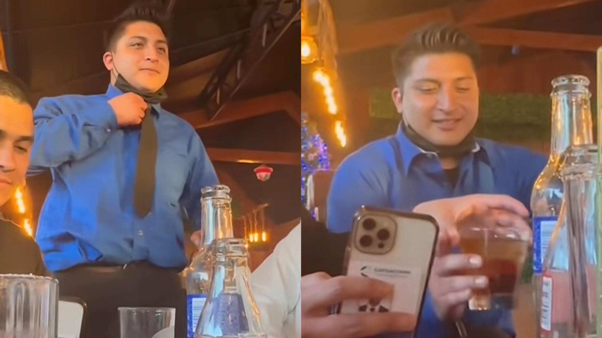 En los videos virales, se puede observar al mesero preparando bebidas con evidentes dificultades para coordinar sus movimientos, lo que sugiere su estado de embriaguez. Además, se le ve quitándose parte de su indumentaria de trabajo mientras bromea con los comensales sobre su decisión de dejar el empleo.