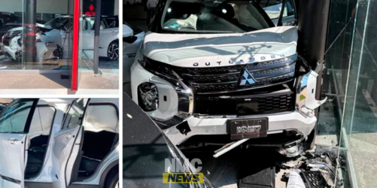 Un inusual accidente ocurrió en la agencia Mitsubishi Motors de Tepic, Nayarit, en el cruce de las avenidas Insurgentes e Independencia, cuando una mujer de aproximadamente 40 años perdió el control de una camioneta Outlander que estaba probando, causando daños dentro de las instalaciones y dejando a varios empleados heridos.
