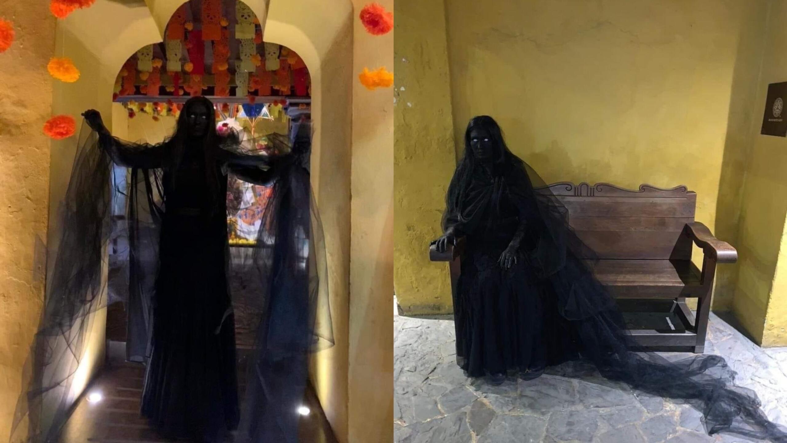 Las imágenes la capturaron mientras recorría las calles de la capital oaxaqueña, posando en lugares emblemáticos como el Templo de Santo Domingo, el andador turístico, la Alameda, un restaurante y fachadas de museos e iglesias de la ciudad. Su realismo y la impresionante calidad de su disfraz llevaron a muchas personas a sentir auténtico terror al verla, ya que parecía una auténtica aparición del inframundo.