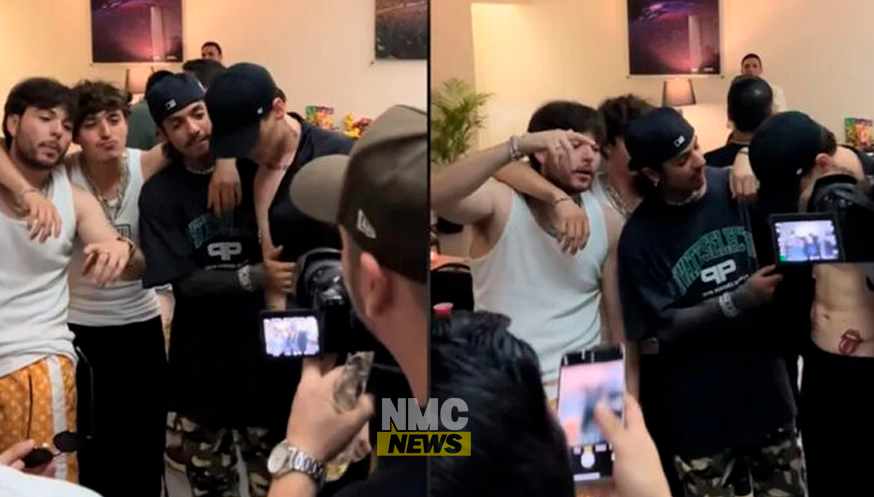 El video muestra a Natanael Cano acompañado de Peso Pluma, Gabito Ballesteros y Tito Double P, quienes posaban juntos para una fotografía. Fue en ese momento cuando Cano, conocido por su carisma y su estilo desenfadado, sorprendió a todos al besar el abdomen de Peso Pluma, provocando las risas de los presentes.