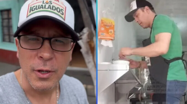 Las imágenes, compartidas en plataformas digitales, muestran a Ulises de la Torre atendiendo personalmente su negocio de comida en la zona sur de la Ciudad de México, donde prepara alimentos y convive directamente con los clientes.