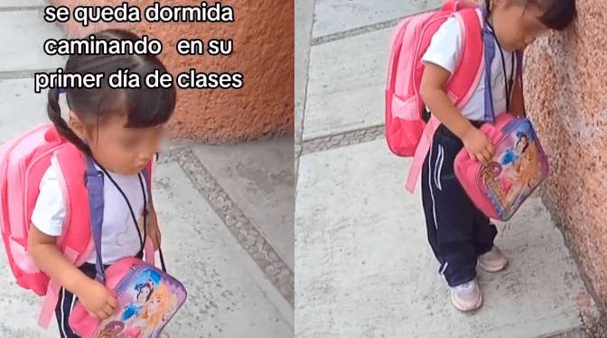 En las conmovedoras imágenes, se puede ver a la niña manteniendo los ojos cerrados mientras avanza hacia su primer día de clases. Su madre, que la acompaña, le dice con cariño: «No te duermas caminando, vas a chocar, amor». A medida que la niña continúa caminando, se apoya en la pared, casi dormida, mientras su madre le anima: «Ya falta poquito para llegar a la escuela, Aymeé, por favor».