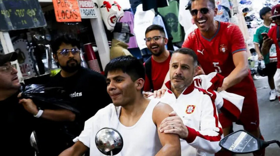 Durante su paso por el tradicional tianguis de Tepito, los exjugadores caminaron entre puestos, se tomaron fotografías con seguidores y convivieron con comerciantes, portando el uniforme que utilizará Portugal en la Copa Mundial de la FIFA 2026.