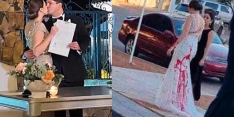 Justo antes de la ceremonia nupcial, un sujeto no identificado arrojó pintura roja sobre el vestido blanco de la novia, en un aparente acto de malicia proveniente de conflictos familiares. Se especula que la suegra de la joven podría estar detrás de este desafortunado incidente.