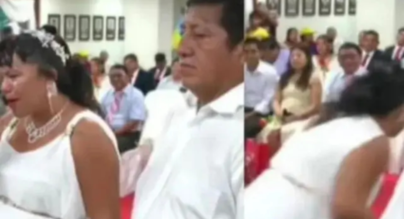 La ceremonia fue oficiada por la regidora Yardeli Rodrigo Díaz, quien realizaba la tradicional pregunta a cada pareja para confirmar su consentimiento. Cuando llegó el turno de Elena Barrantes y Clever Guayán, la novia tomó el micrófono con un rostro visiblemente afectado. «Perdónenme todos, no acepto», expresó en voz alta antes de salir corriendo con lágrimas en los ojos.