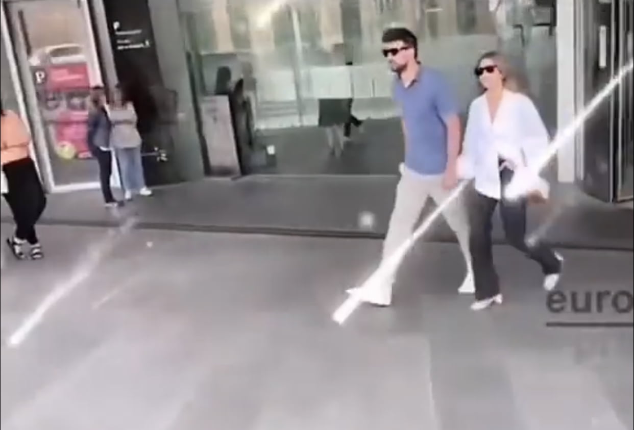 La pareja intentó salir corriendo del lugar mientras la escena fue captada en video y compartida por Europa Press.
