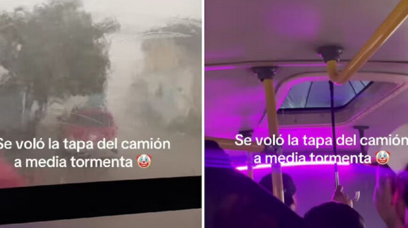 En Guadalajara, Jalisco, un video se volvió viral al mostrar cómo un grupo de pasajeros improvisó una creativa solución cuando la tapa del techo de un autobús se desprendió durante una intensa tormenta con granizo y fuertes vientos.