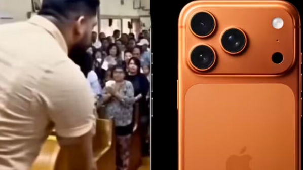 Durante su sermón, el religioso, micrófono en mano, afirmó haber recibido una “revelación divina” relacionada con los nuevos teléfonos de Apple.