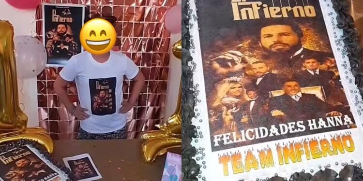 El pastel de cumpleaños estaba decorado con una imagen de los integrantes del ‘Team Infierno’, como Wendy Guevara, Apio Quijano, Poncho de Nigris, Sergio Mayer, Emilio Osorio y Nicola Porcella. Además, en el pastel se podía leer: «Felicidades Hanna. Team infierno». La niña llevaba con orgullo una camiseta blanca con la misma imagen del pastel y las paredes estaban adornadas con más imágenes de los integrantes del cuarto del infierno.