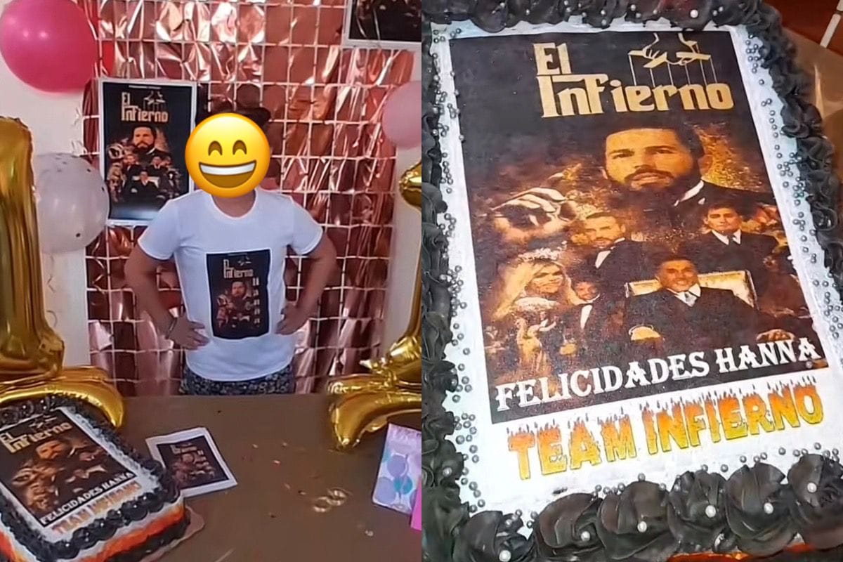 El pastel de cumpleaños estaba decorado con una imagen de los integrantes del ‘Team Infierno’, como Wendy Guevara, Apio Quijano, Poncho de Nigris, Sergio Mayer, Emilio Osorio y Nicola Porcella. Además, en el pastel se podía leer: «Felicidades Hanna. Team infierno». La niña llevaba con orgullo una camiseta blanca con la misma imagen del pastel y las paredes estaban adornadas con más imágenes de los integrantes del cuarto del infierno.