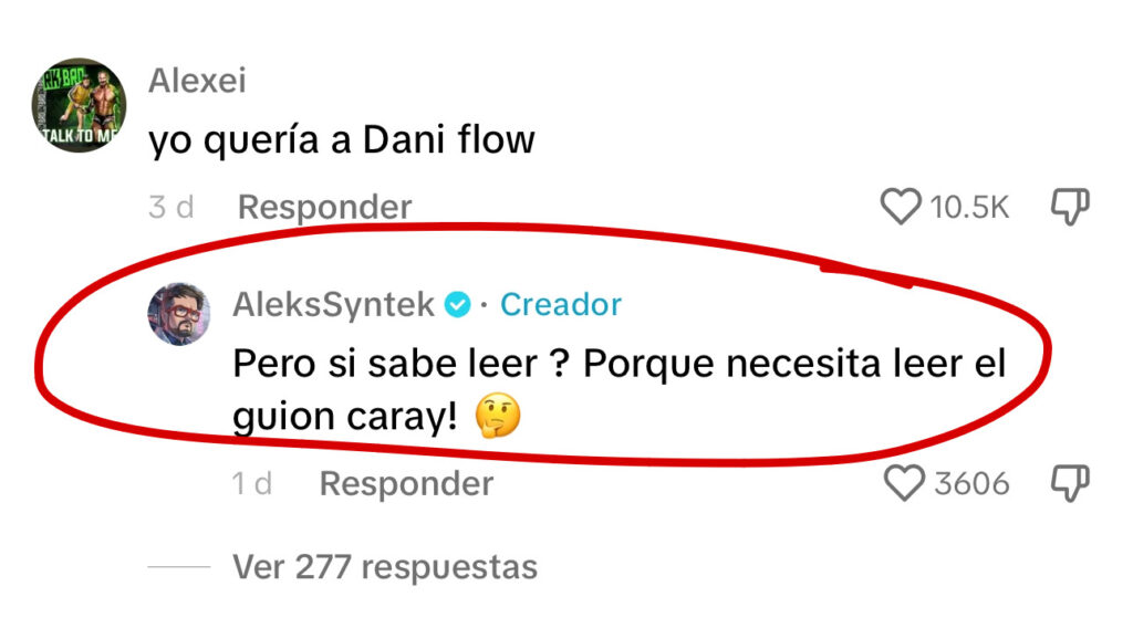 «¿Pero sí sabe leer? porque necesita leer el guión, caray!», fue la respuesta que dejó Syntek, rompiendo el corazón del fanático y agregando un toque de crítica hacia el género del reguetón.