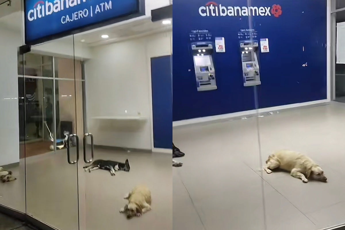 El inesperado encuentro tuvo lugar en una sucursal bancaria ubicada en Lázaro Cárdenas, Guerrero. Los transeúntes no podían creer lo que veían cuando se percataron de que los perritos habían encontrado un resguardo fresco y seguro en el interior del cajero.