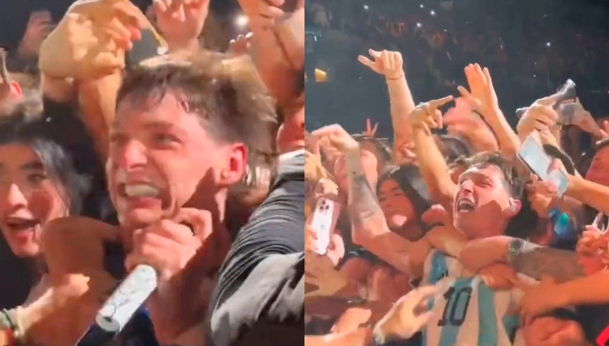 En la grabación, Peso Pluma se acerca a la multitud con la camiseta de fútbol de Argentina mientras interpreta su canción «Lady Gaga». El ambiente festivo se ve eclipsado por la desesperación de algunos fanáticos que intentan tocar al artista, llegando incluso a abrazarlo y agarrarlo del cuello en su entusiasmo.
