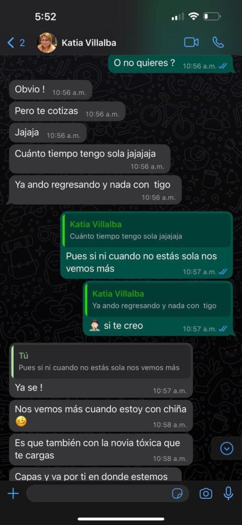 La historia comenzó a difundirse cuando Salma compartió capturas de pantalla de conversaciones comprometedoras que su novio mantenía con una mujer identificada como Katia Villalba.