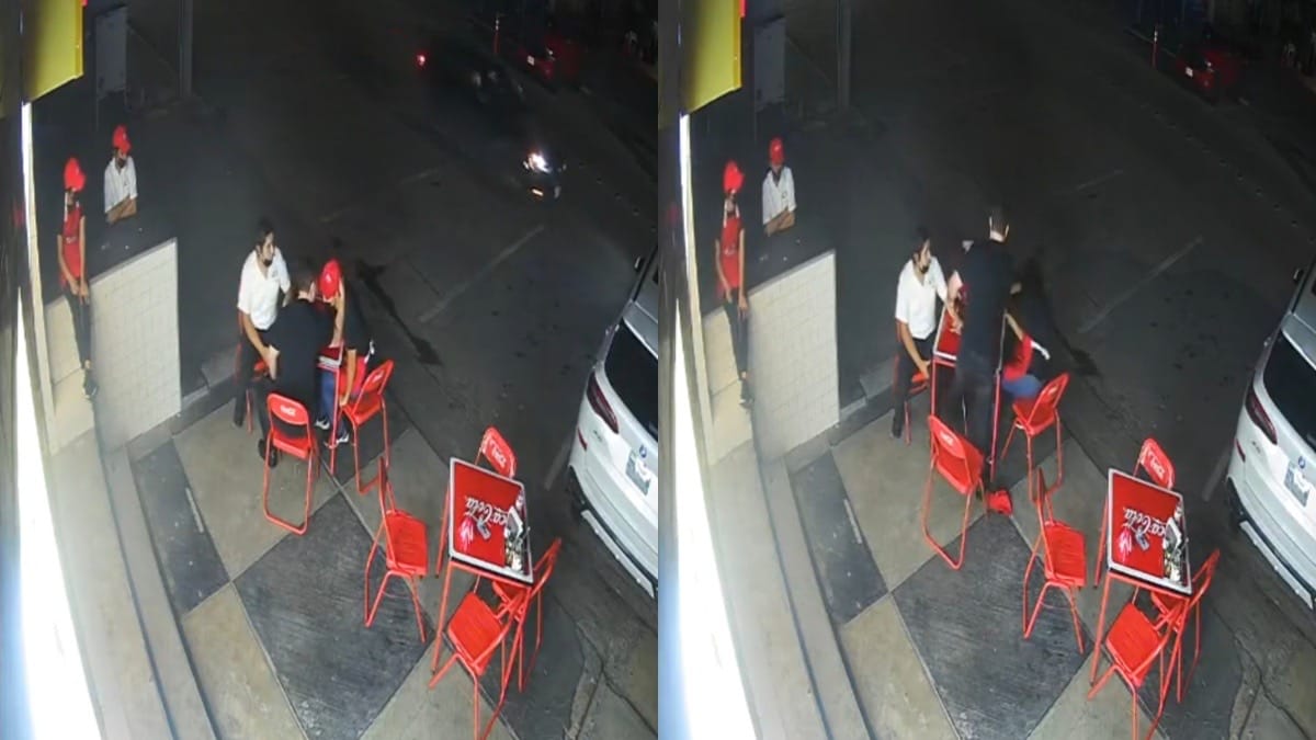 En el video, compartido en Twitter, se puede ver que el sujeto discute acaloradamente con un mesero. La discusión escaló rápidamente y el hombre reaccionó de manera violenta, golpeando al empleado repetidamente sobre la mesa del establecimiento.