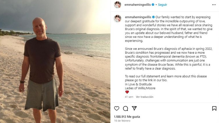 Según una fuente no identificada que habló con la revista US Weekly, la salud de Willis se ha deteriorado rápidamente en los últimos dos meses. La demencia frontotemporal, una enfermedad neurodegenerativa que afecta la conducta y las habilidades cognitivas, ha llevado a que haya «más días malos que buenos» para el actor de 68 años.