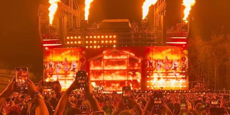 Cuando la cantante interpretó la canción Bad Blood, Taylor Swift utilizó como efecto visual, grandes columnas de fuego al estilo de la banda de metal alemana Rammstein.