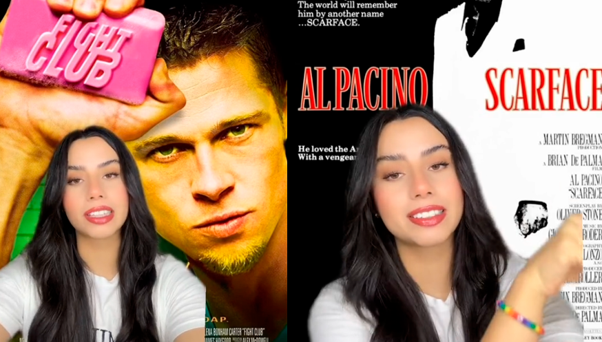 En segundo lugar, mencionó «Cara Cortada» de Brian De Palma, expresando que esta elección es típica de un hombre blanco heterosexual promedio que aspira a ser como Tony Montana, el personaje principal.